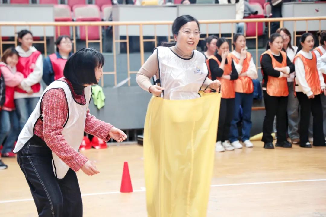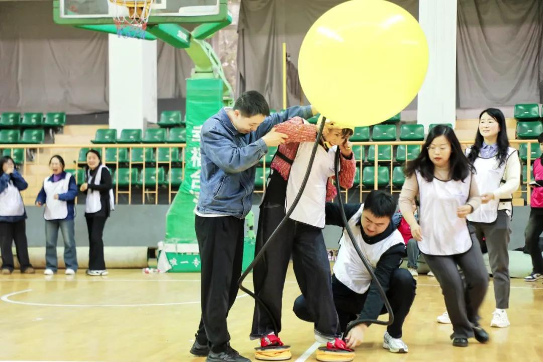活动在全体人员整齐划一的工间操中拉开帷幕。大家精神抖擞、舒展身姿,展现出昂扬向上的巾帼风貌。随后的趣味比赛设置“袋鼠跳”“欢乐踩蹦蹦”“帽力全开挑战赛”三个项目,既有体力与技巧的较量,更有团队协作的比拼。赛场上,选手们你追我赶、默契配合,气球爆破声与呐喊助威声此起彼伏,欢声笑语洋溢着整个体育馆,将节日氛围推向高潮。